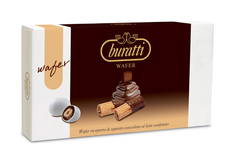 Confetti ripieni di deliziosi wafer ricoperti di squisito cioccolato al latte. Colore bianco.