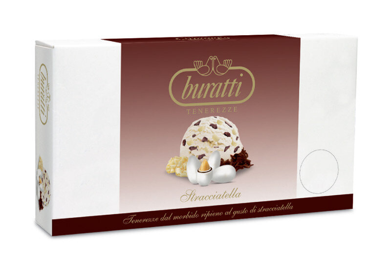 Confetti finissimi dal morbido ripieno al delizioso gusto di stracciatella. Colore bianco. Confezione da 1 kg. Gluten free.